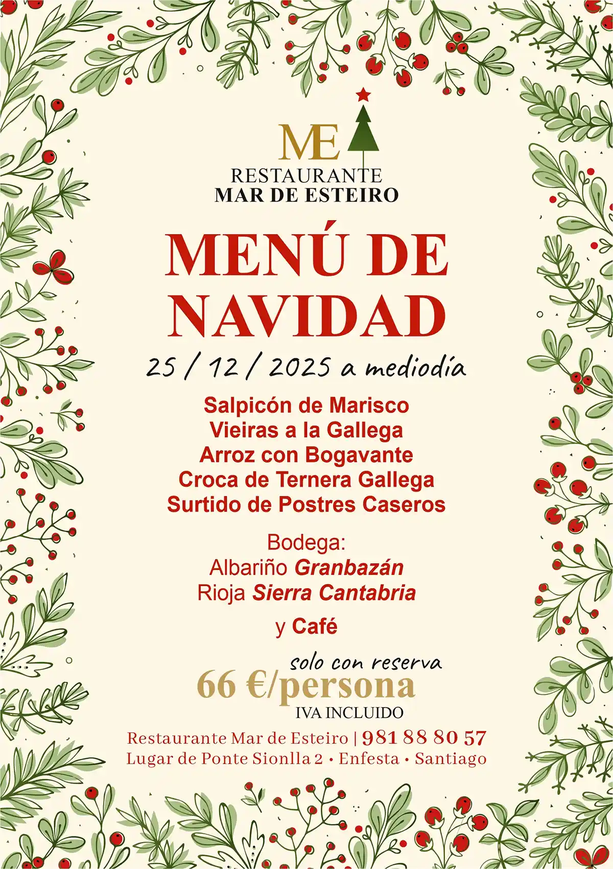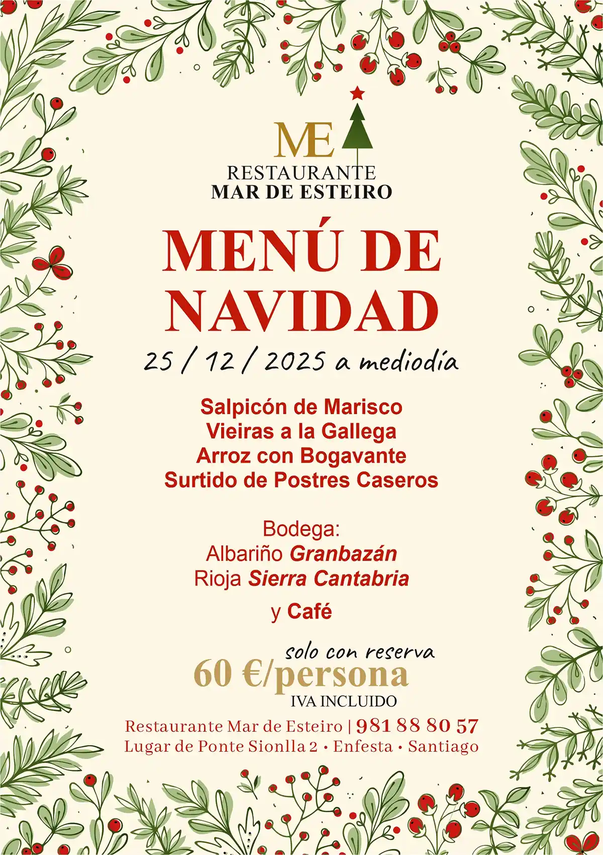 Ven a disfrutar el día más mágico de la Navidad con tu familia o amigos a Mar de Esteiro. Descubre nuestra propuesta para celebrar el día de Navidad con una comida especial.